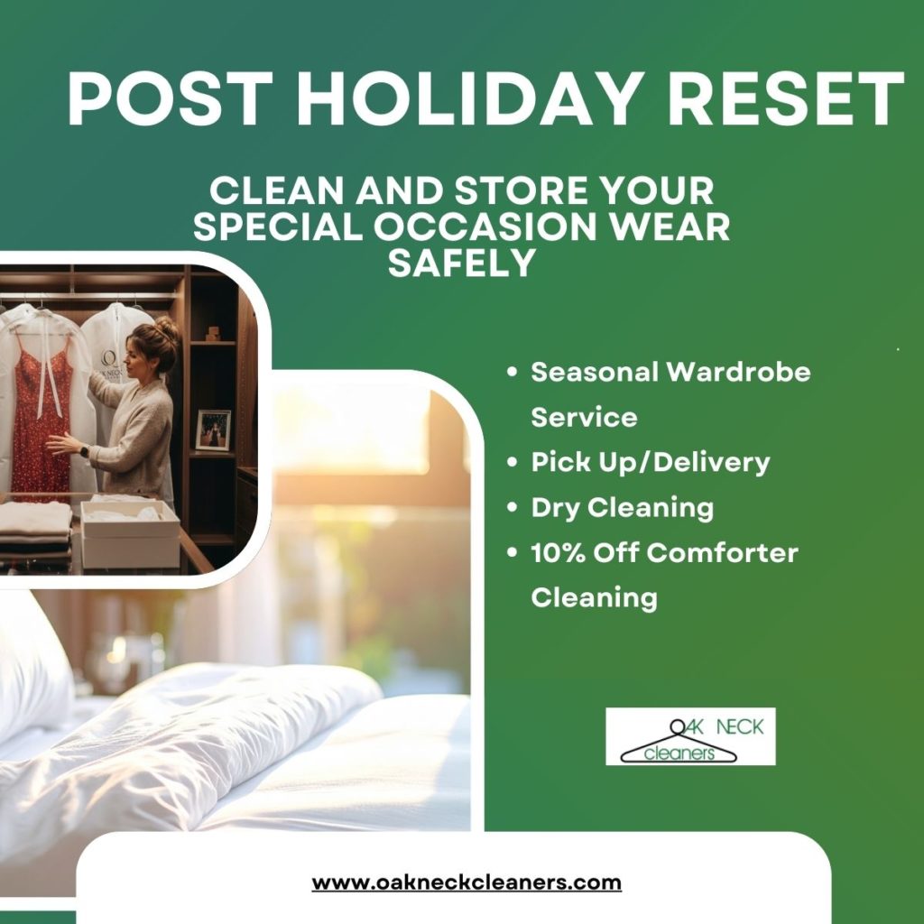 Start the new year fresh: clean and store your holiday best the right way with Oak Neck Cleaners.